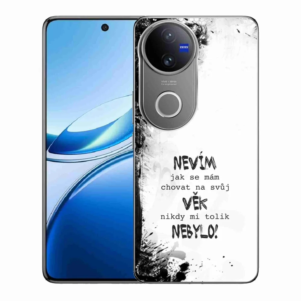Rugalmas zselés tok mmCase a Vivo V50 5G képével - vicces szöveg 14 fehér háttérrel