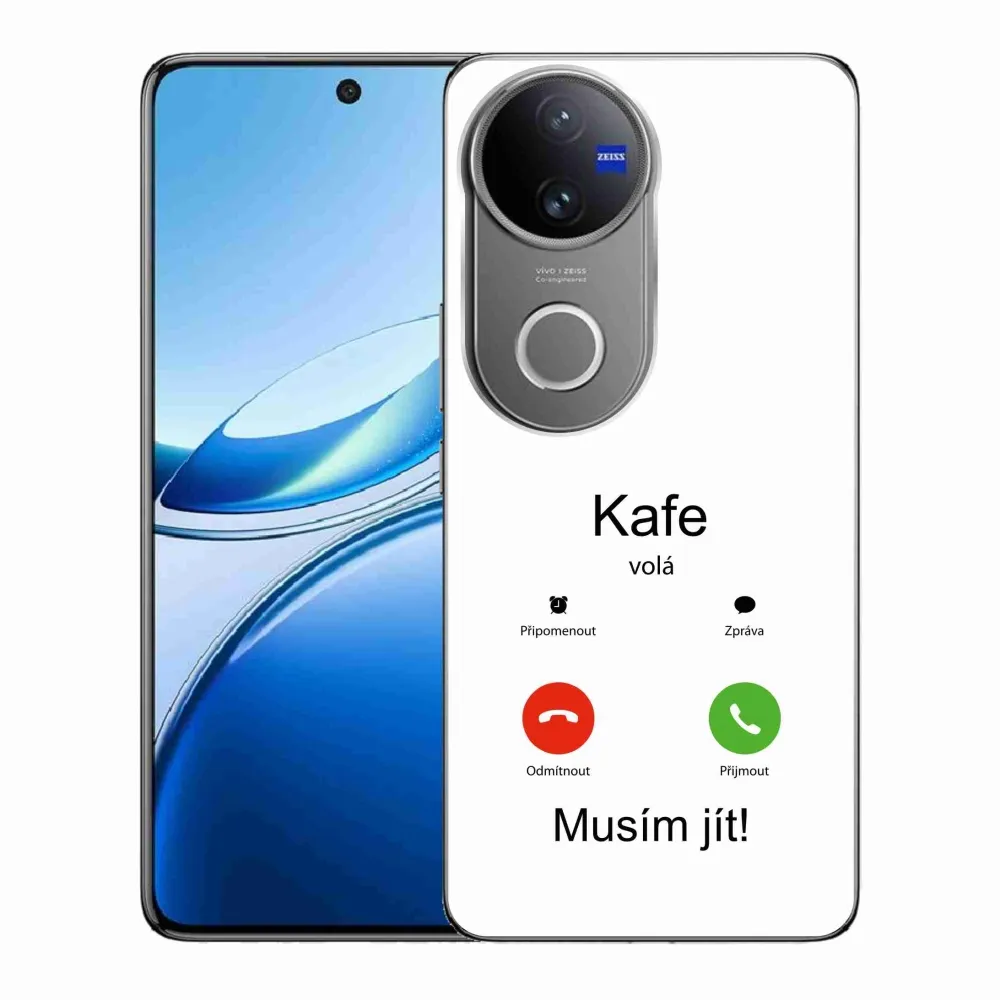 Rugalmas zselés tok mmCase a Vivo V50 5G képével - kávé hívások fehér háttérrel