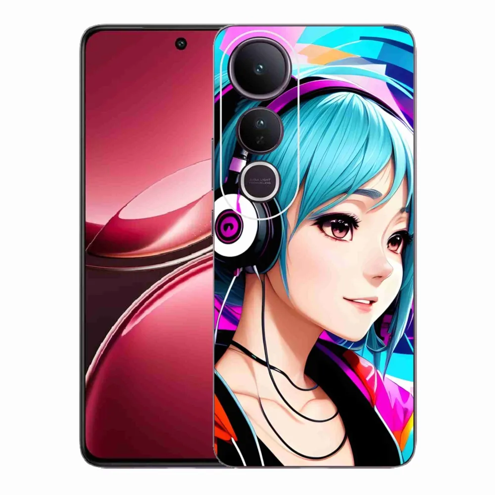 Rugalmas zselés tok mmCase a Vivo V50 Lite 4G/5G képével - lány fejhallgatóval