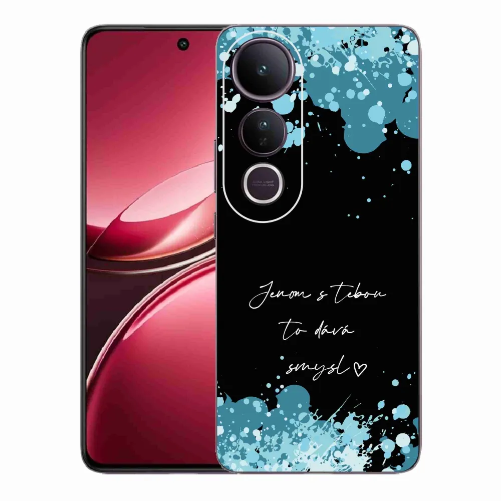 Rugalmas zselés tok mmCase a kép Vivo V50 Lite 4G/5G - szerelem szöveg fekete háttérrel