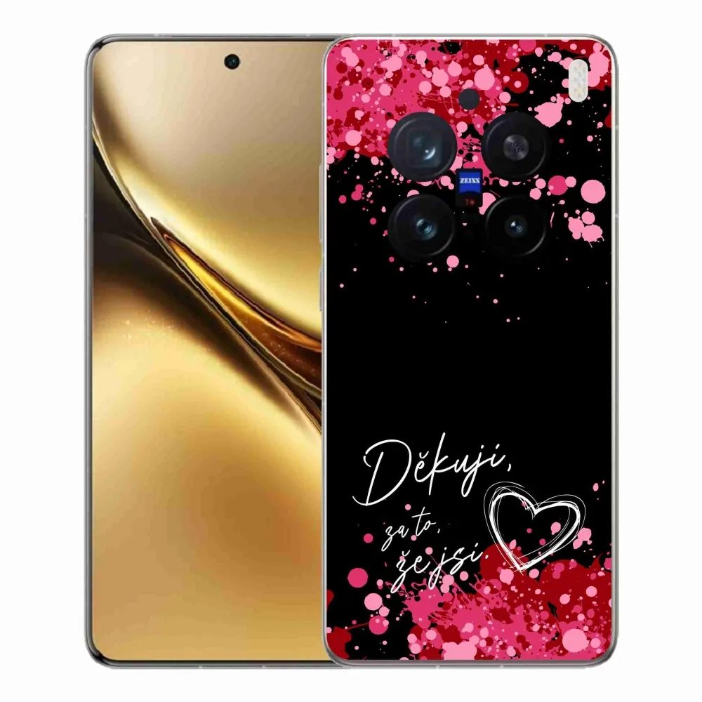 Rugalmas zselés tok mmCase a Vivo X200 Pro 5G képével - szerelmes szöveg 2 fekete háttérrel