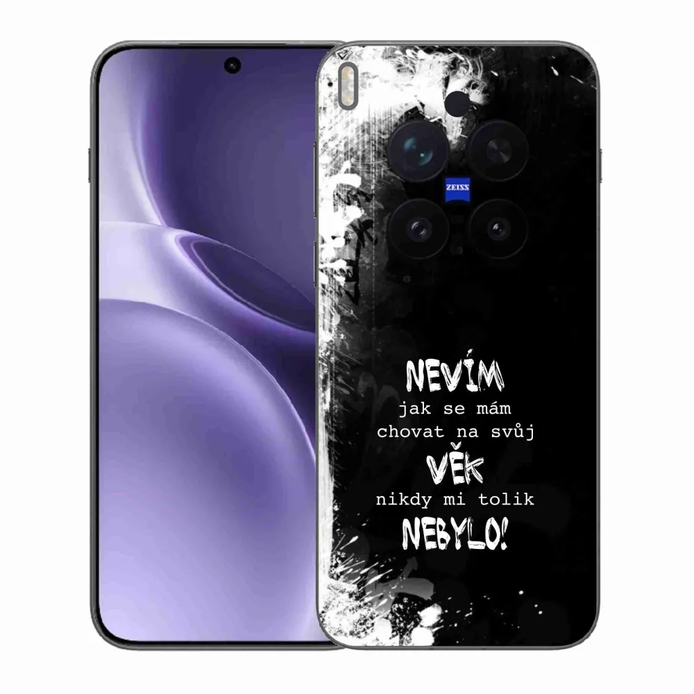 Rugalmas zselés tok mmCase a Vivo X300 Pro képével - vicces szöveg 14 fekete háttérrel