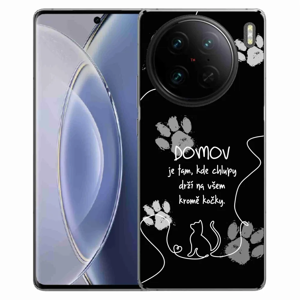Rugalmas zselés tok mmCase a Vivo X90 Pro képével - macska motívum fekete háttérrel