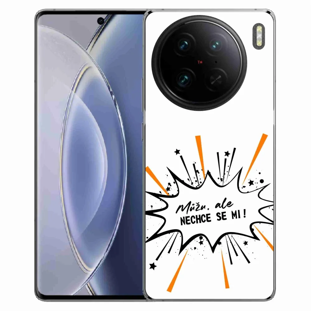 Rugalmas zselés tok mmCase a Vivo X90 Pro képével - vicces szöveg 11 fehér háttérrel