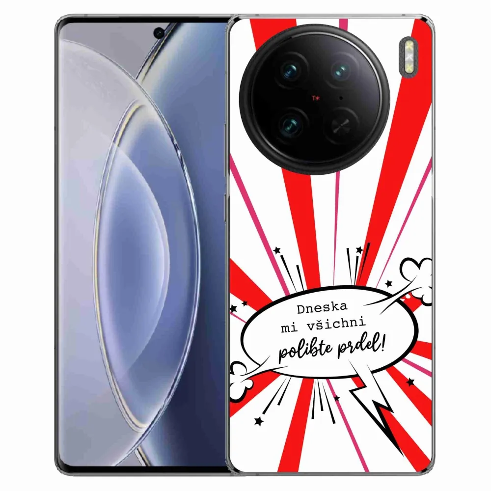 Rugalmas zselés tok mmCase a Vivo X90 Pro képével - vicces szöveg 15 fehér háttérrel