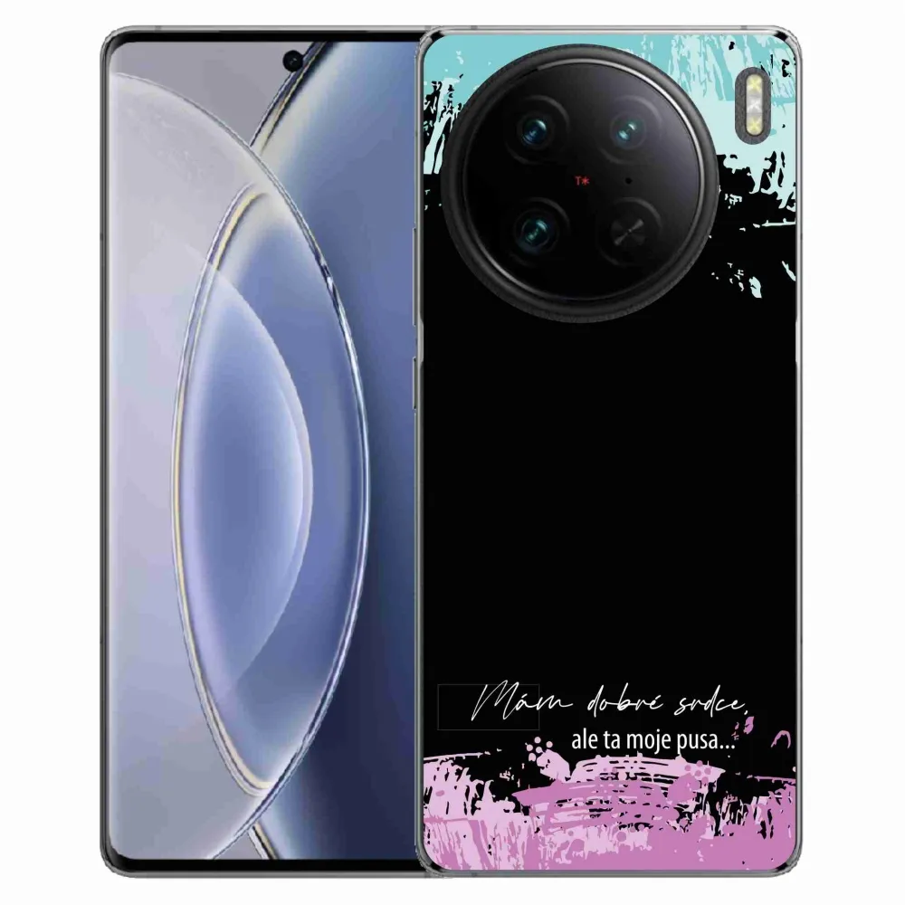 Rugalmas zselés tok mmCase a Vivo X90 Pro képével - vicces szöveg 3 fekete háttérrel