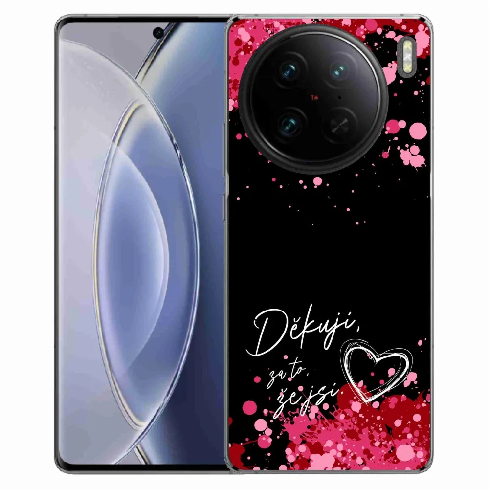 Rugalmas zselés tok mmCase a Vivo X90 Pro képével - szerelmes szöveg 2 fekete háttérrel
