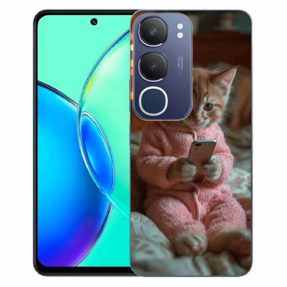Rugalmas zselés tok mmCase a Vivo Y19s képével - cica a mobillal