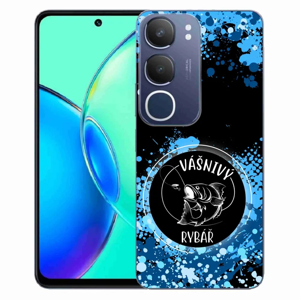 Rugalmas zselés tok mmCase a Vivo Y19s képével - szenvedélyes halász fekete háttérrel