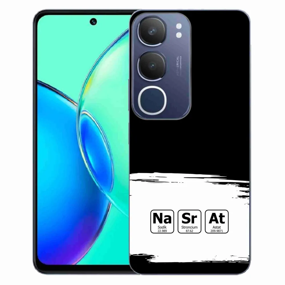 Rugalmas zselés tok mmCase a Vivo Y19s képével - kémiai elemek fehér és fekete háttérrel
