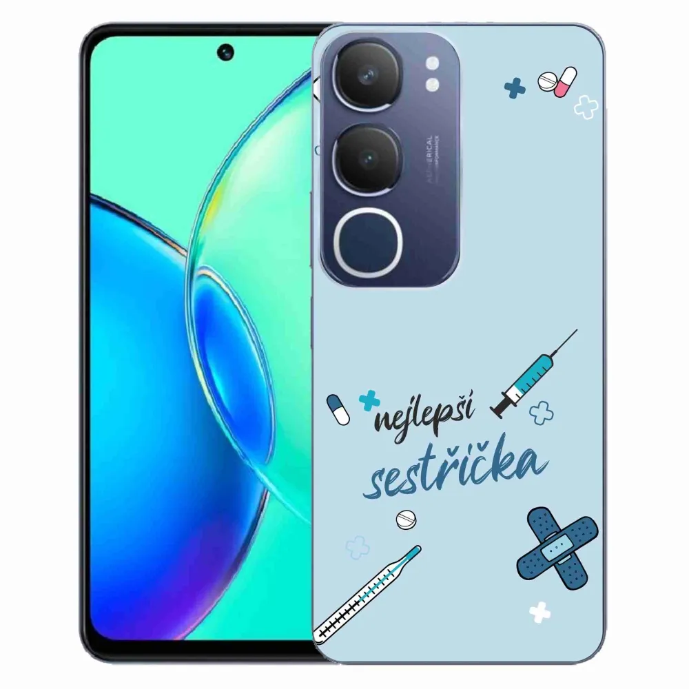 Rugalmas zselés tok mmCase a Vivo Y19s képével - a legjobb kishúg kék háttérrel