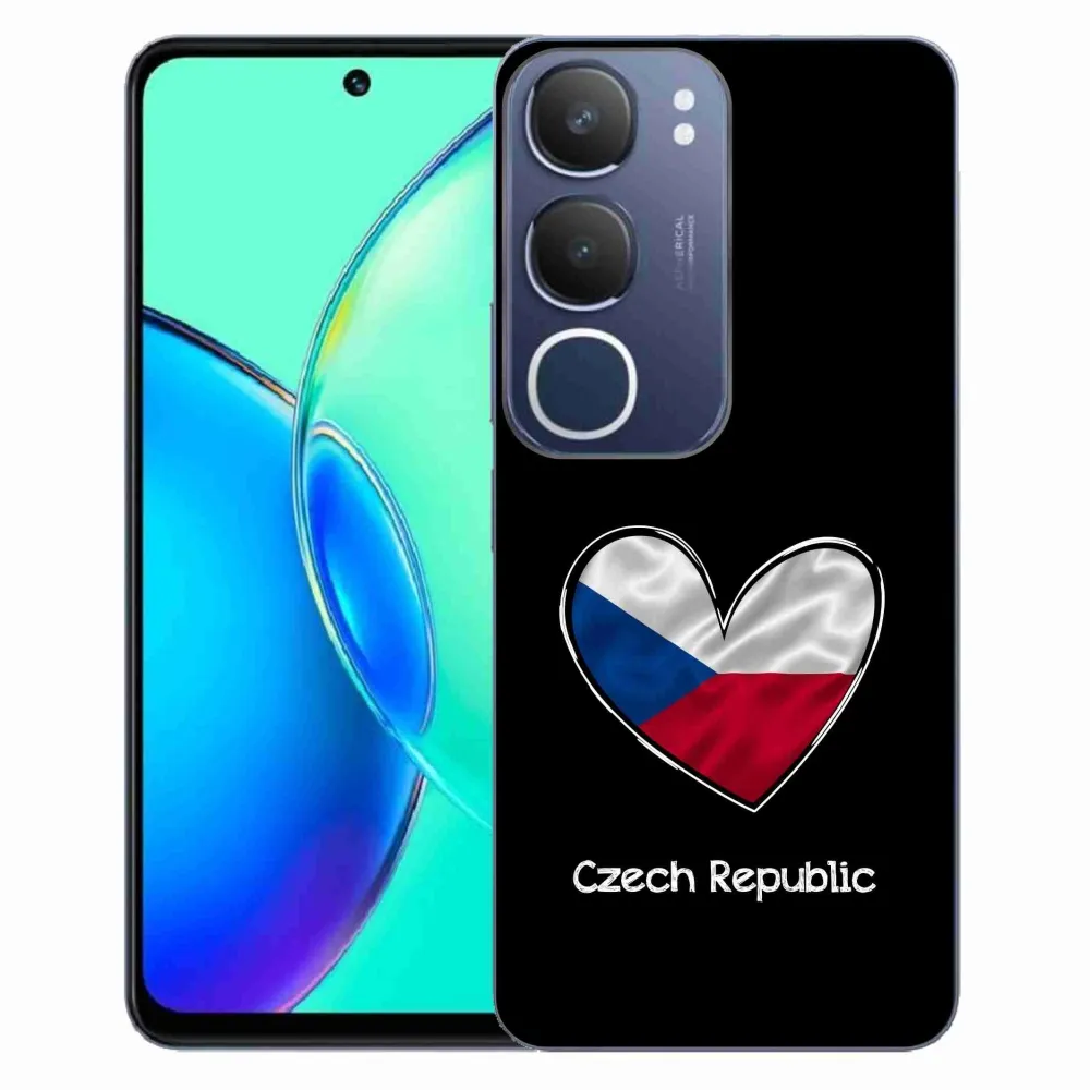 Rugalmas zselés tok mmCase a Vivo Y19s képével - zászló szív fekete háttérrel