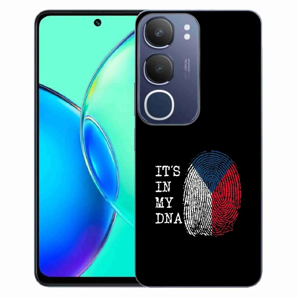 Rugalmas zselés tok mmCase a Vivo Y19s képével - zászlós ujjlenyomat fekete háttérrel