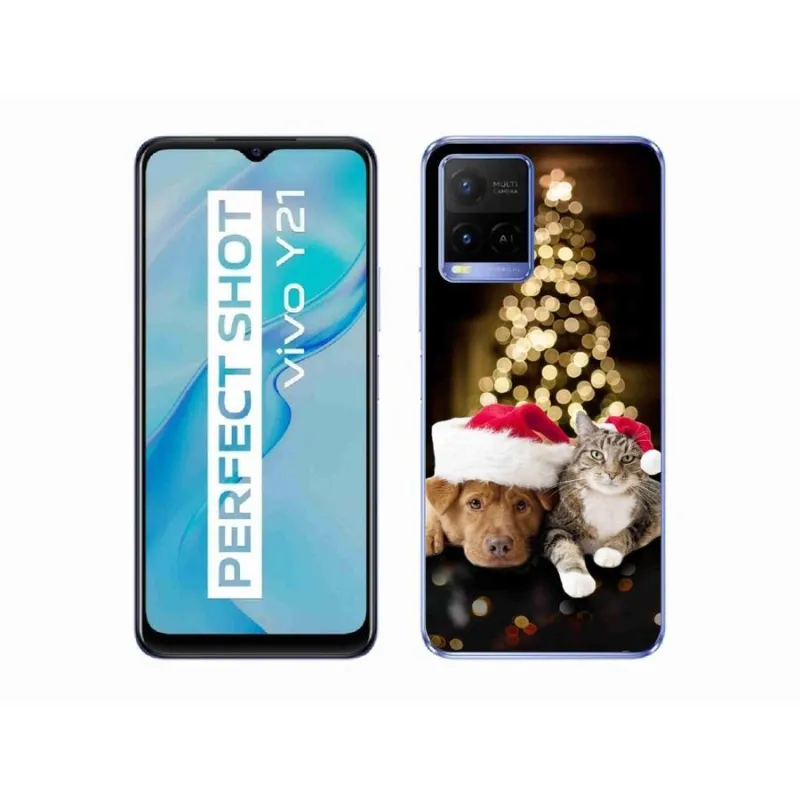 Gél borító mmCase a Vivo Y21/Y21s/Y33s készülékhez - Karácsonyi kutya és macska