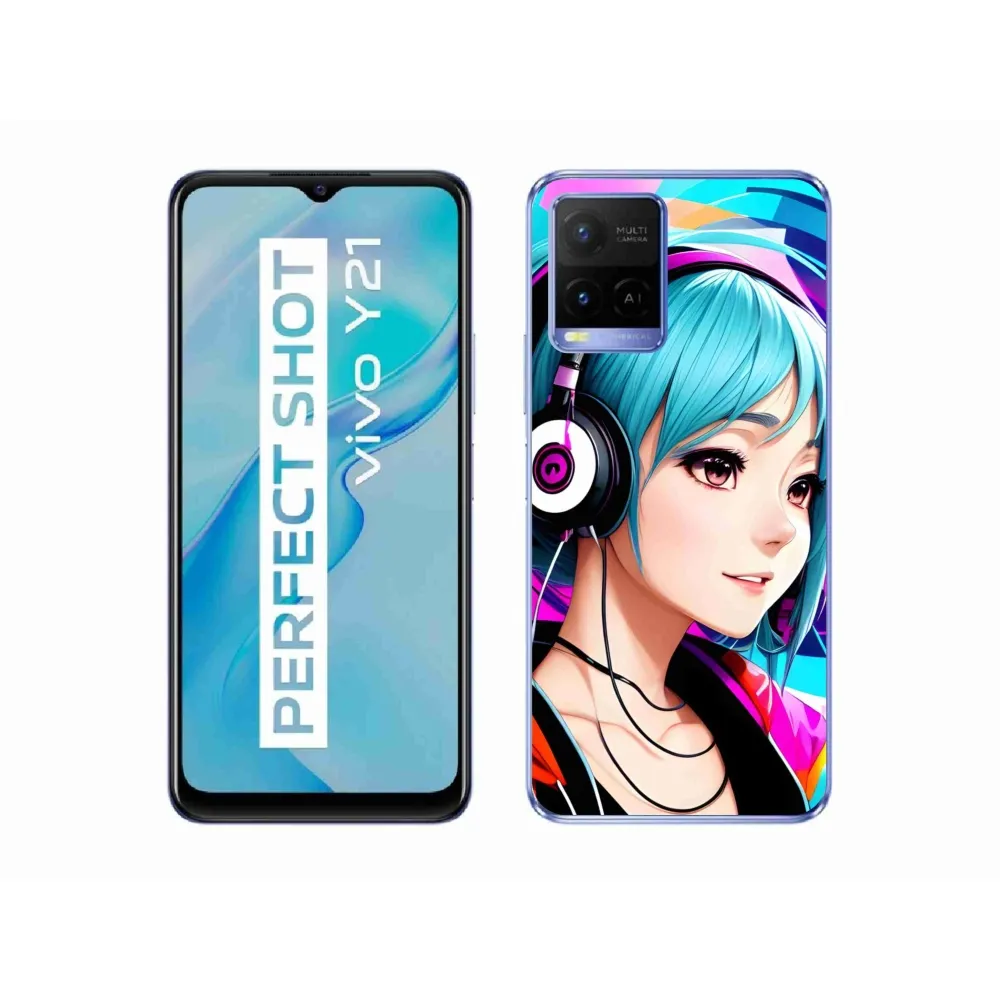 Rugalmas zselés tok mmCase képpel a Vivo Y21/Y21s/Y33s számára - lány fejhallgatóval