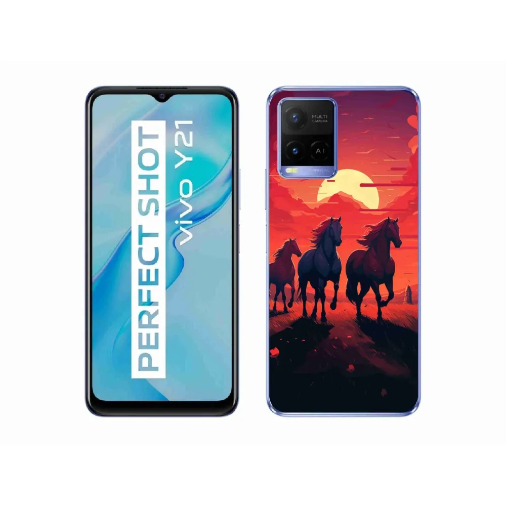 Gél borító mmCase a Vivo Y21/Y21s/Y33s készülékhez - lovak és naplemente