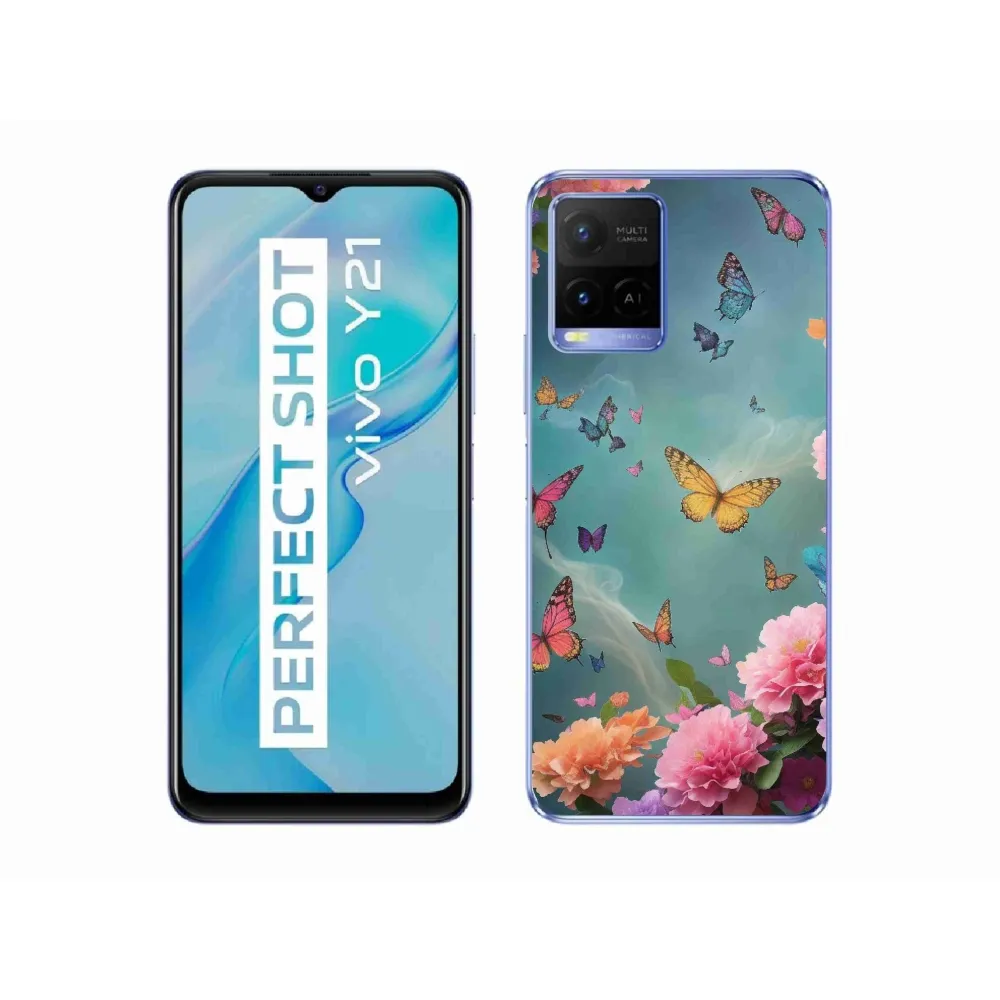Gél borító mmCase a Vivo Y21/Y21s/Y33s készülékhez - színes virágok és pillangók