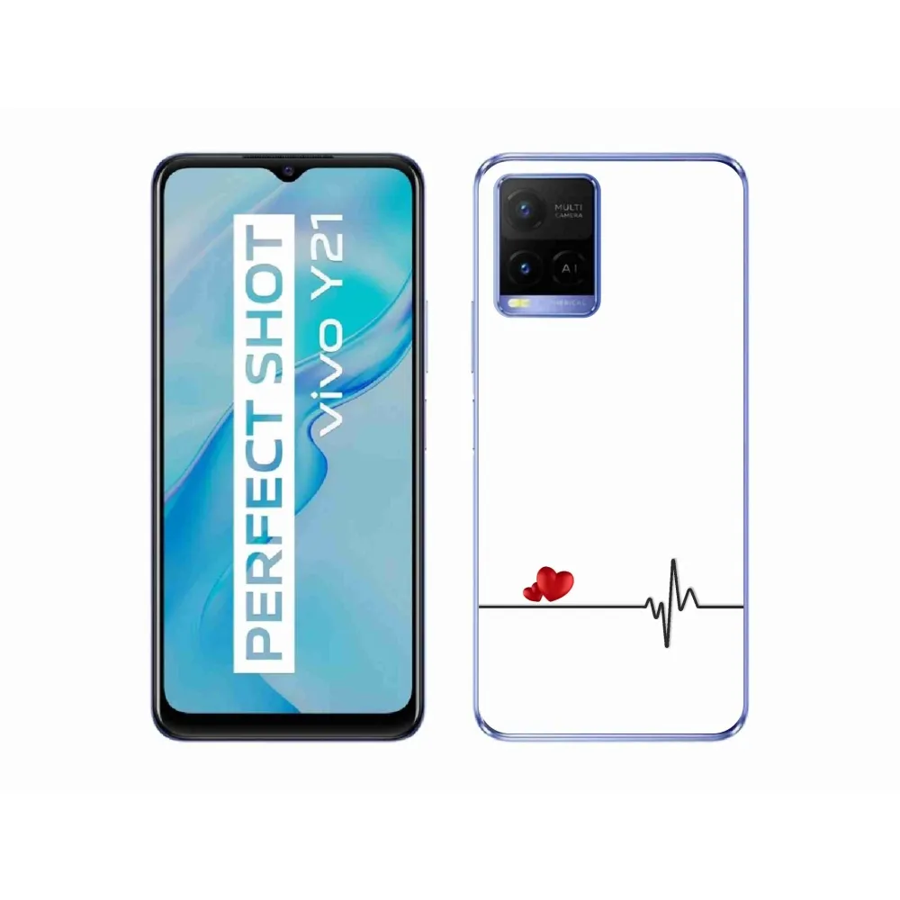 Rugalmas zselés tok mmCase képpel a Vivo Y21/Y21s/Y33s számára - szív és szívverés fehér háttérrel