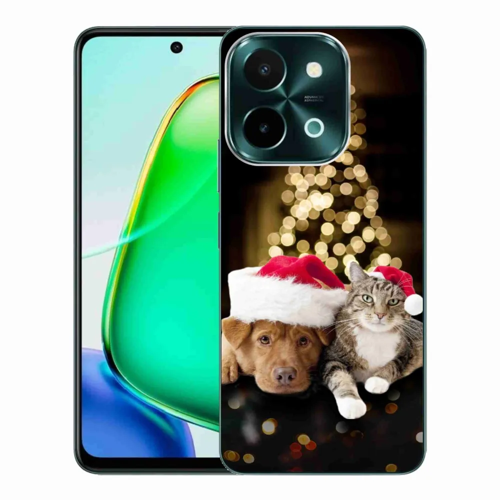 Rugalmas zselés tok mmCase képpel a Vivo Y28-hoz - Karácsonyi kutya és macska
