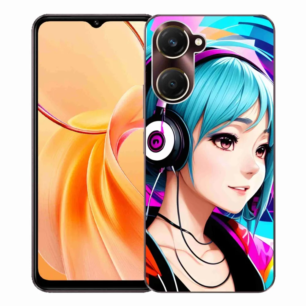 Rugalmas zselés tok mmCase a Vivo Y28s 5G képével - lány fejhallgatóval