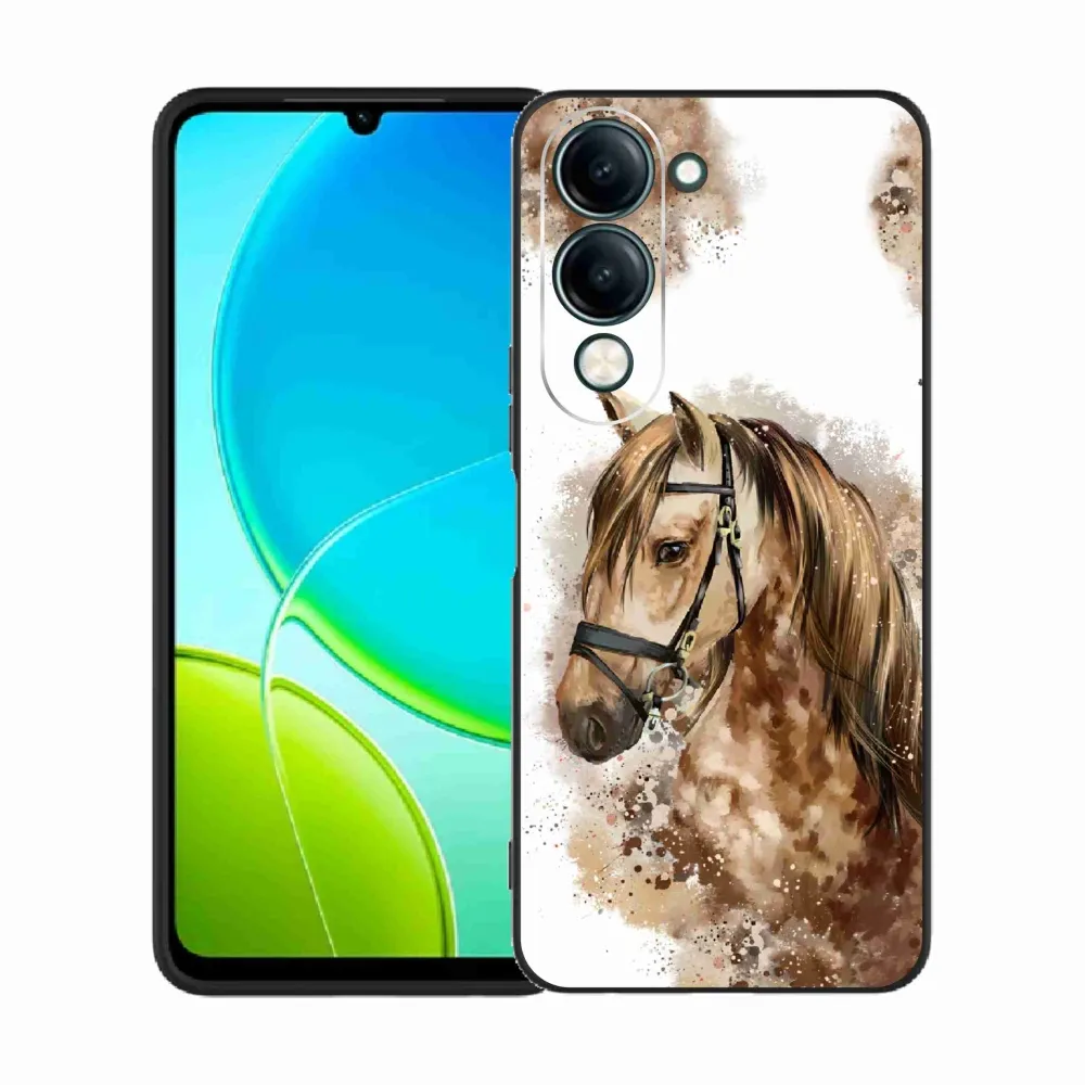 Rugalmas zselés tok mmCase képpel a Vivo Y29s 5G-hez - barna rajzfilmes ló