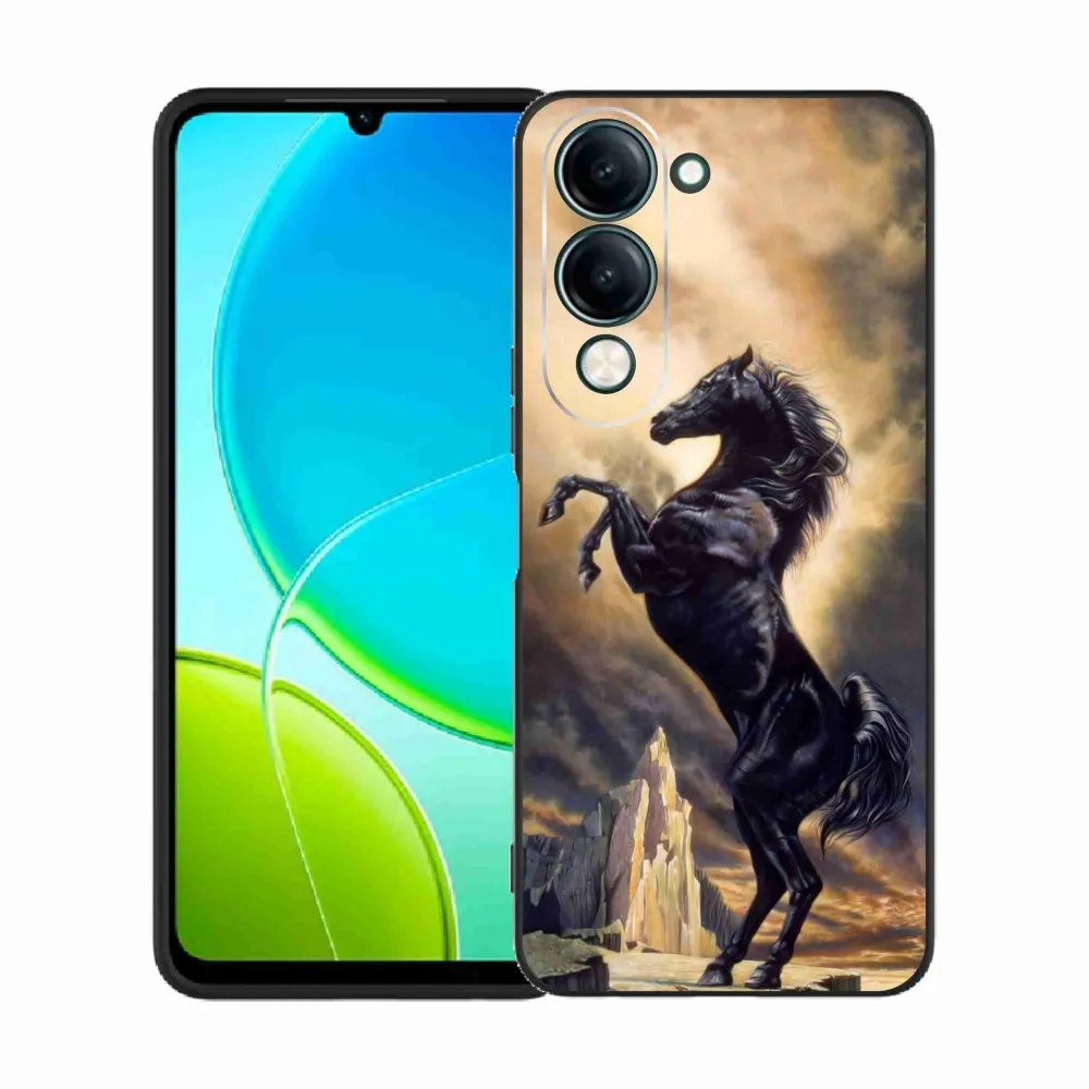 Rugalmas zselés tok mmCase a Vivo Y29s 5G képével - fekete rajzfilm ló