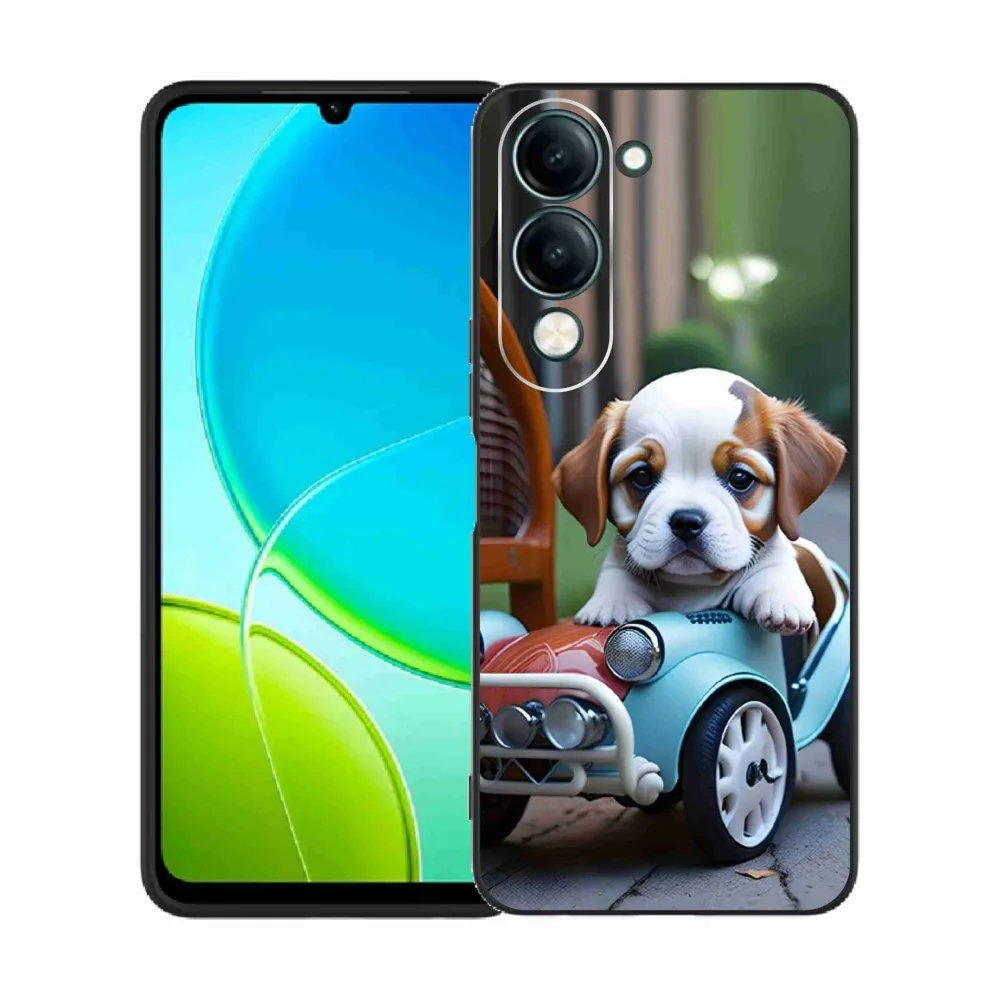 Gél borító mmCase a Vivo Y29S 5G-hez - kiskutya a retro autóban