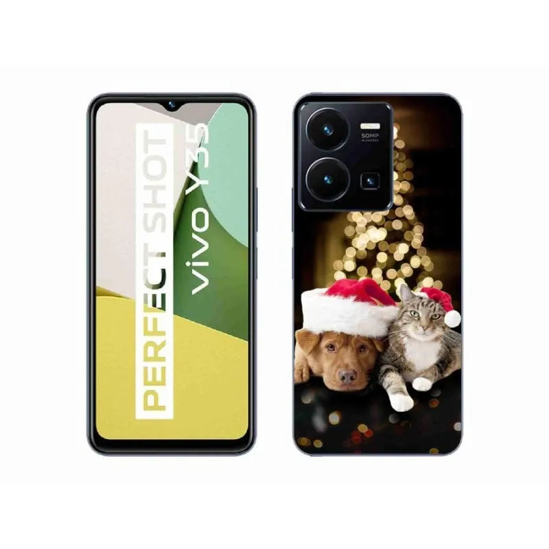 Gél borító mmCase a Vivo Y35 készülékhez - Karácsonyi kutya és macska