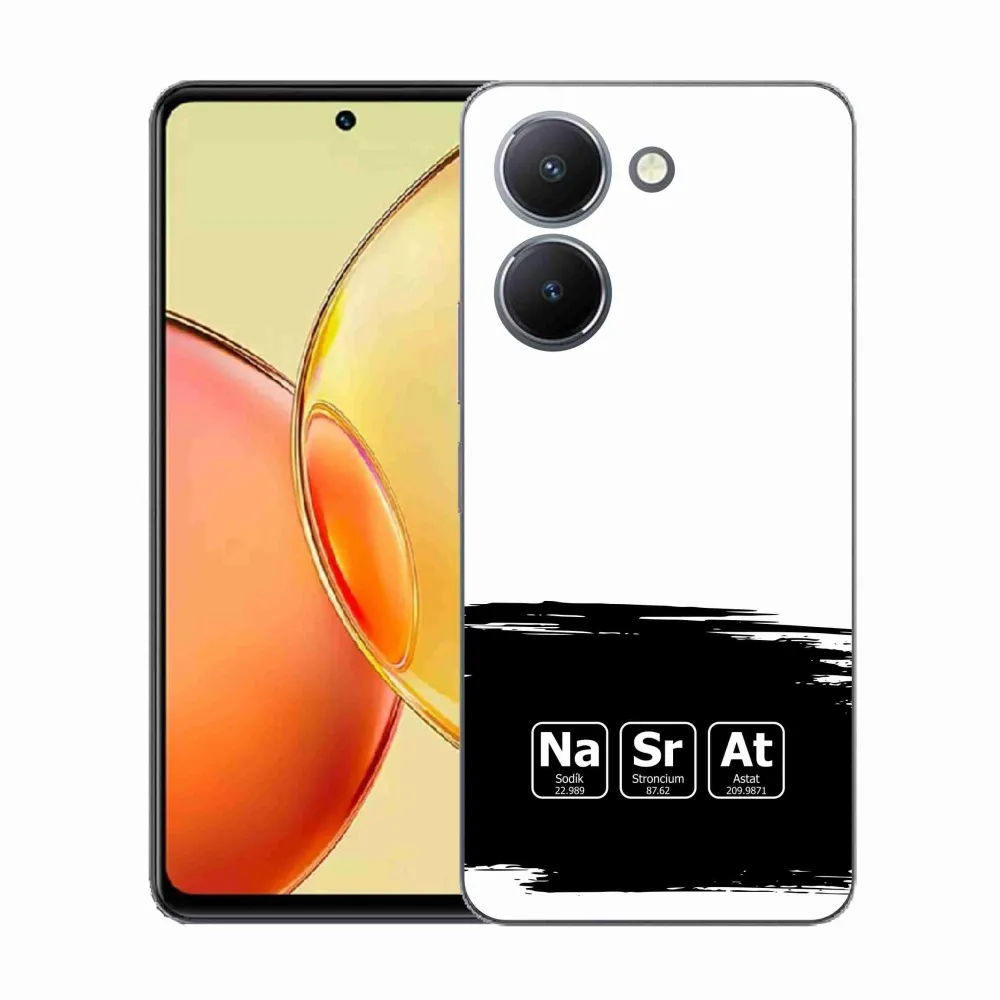 Rugalmas zselés tok mmCase a Vivo Y36 képével - kémiai elemek fekete és fehér háttérrel