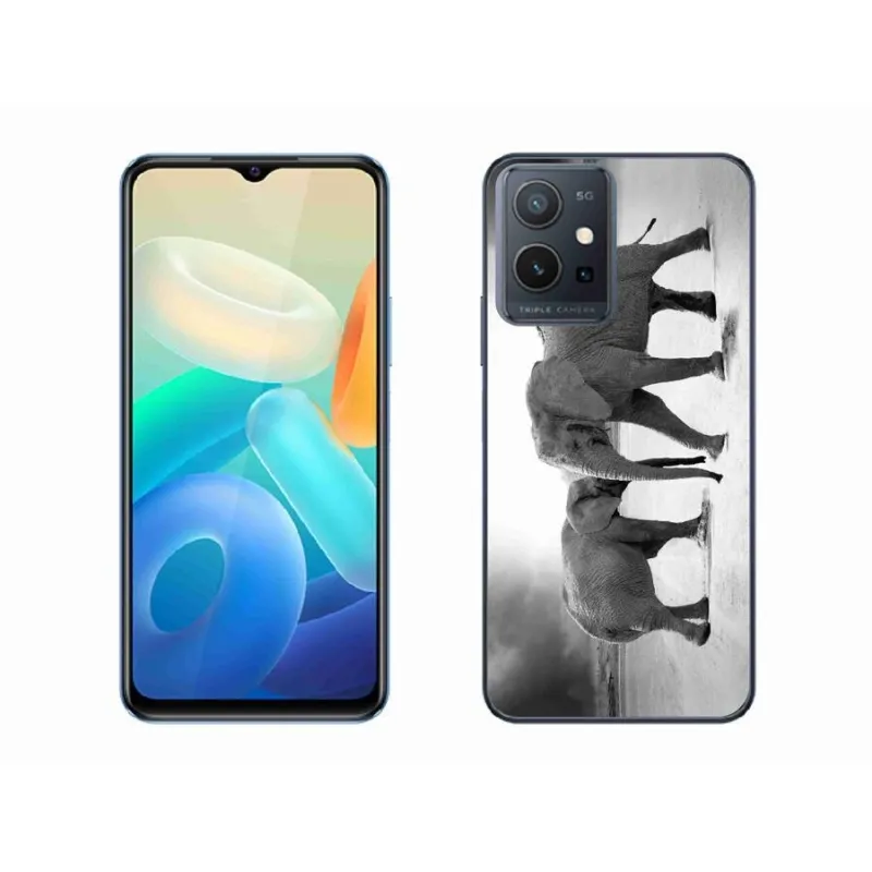Gél borító mmCase a Vivo Y55 5G-hez - fekete és fehér elefántok