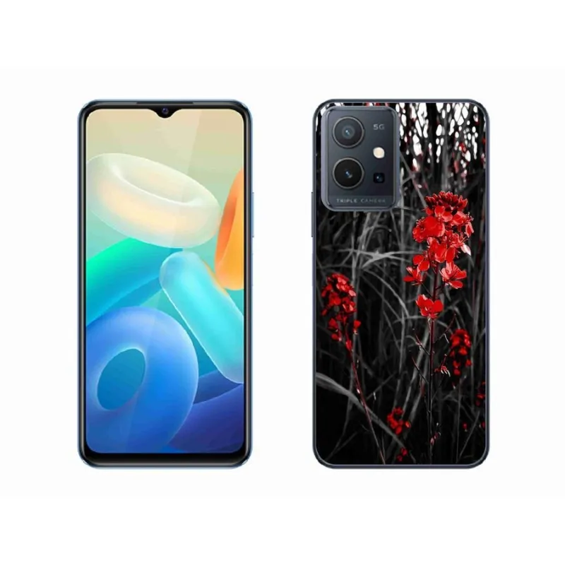 Gél borító mmCase a Vivo Y55 5G-hez - piros növényhez