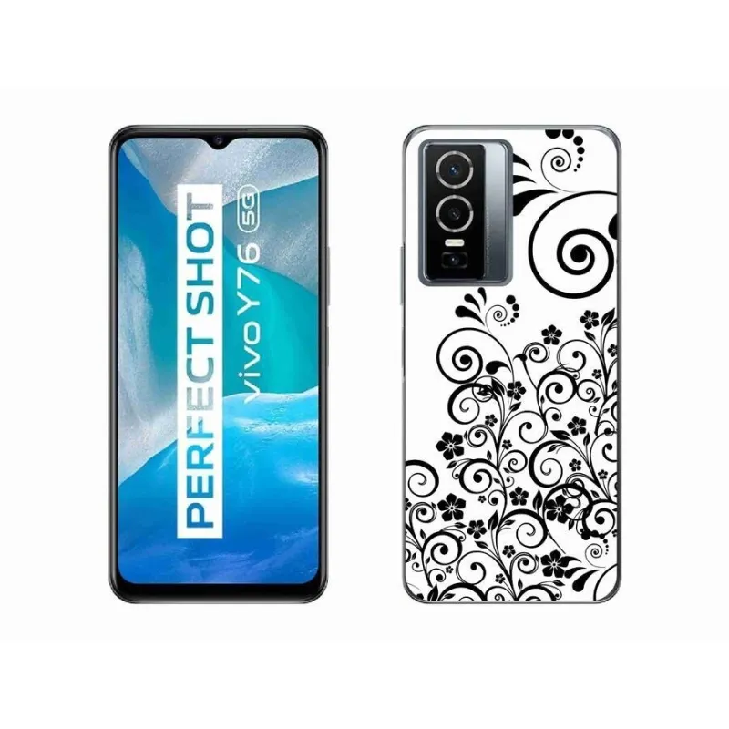 Gél borító mmCase a Vivo Y76 5G készülékhez - fekete és fehér virágmintás
