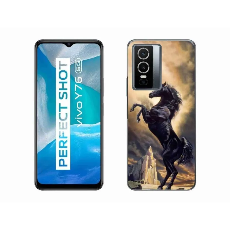 Gél borító mmCase a Vivo Y76 5G készülékhez - fekete rajzfilm ló