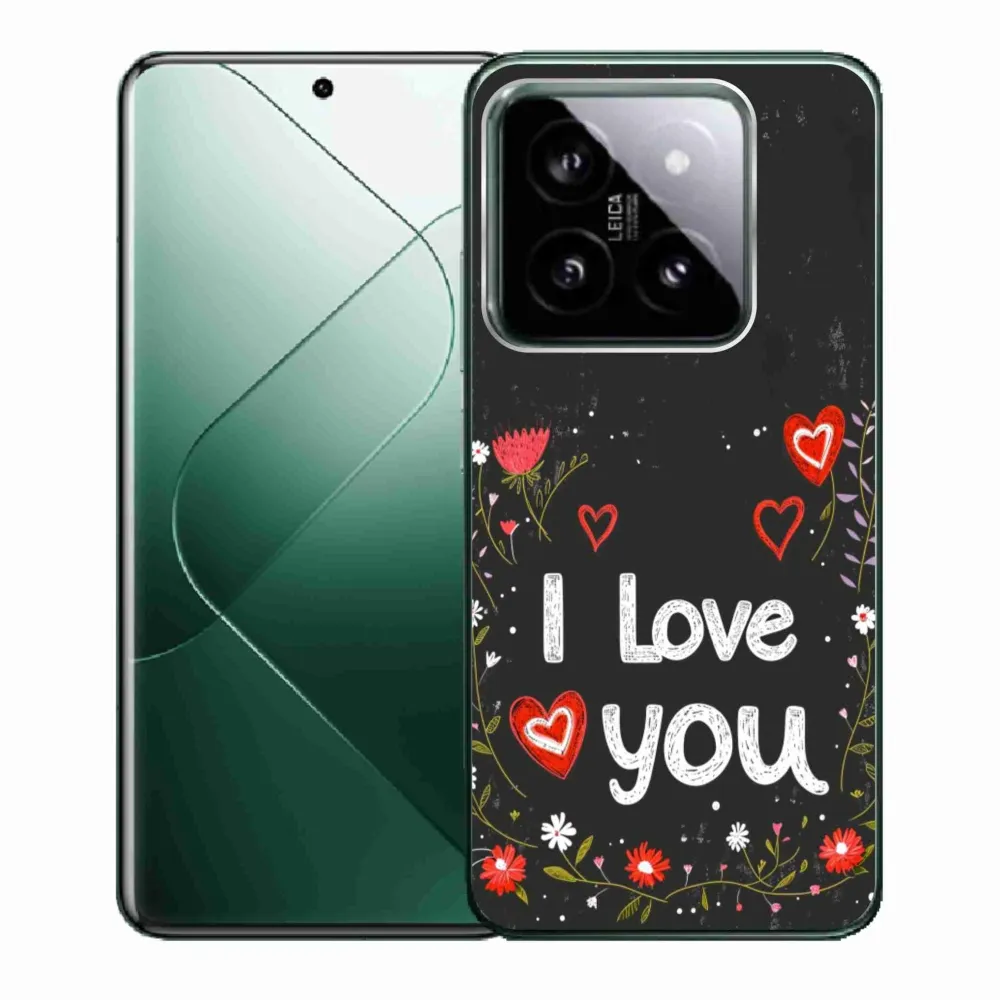 Rugalmas zselés tok mmCase a Xiaomi 14 képével - I love you fekete háttérrel