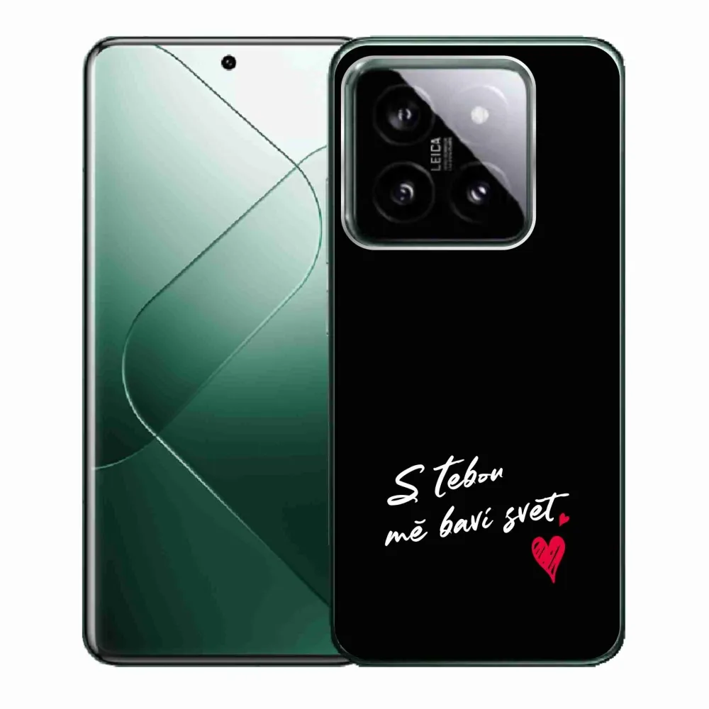 Rugalmas zselés tok mmCase a Xiaomi 14 képével - szerelmes szöveg 1 fekete háttérrel