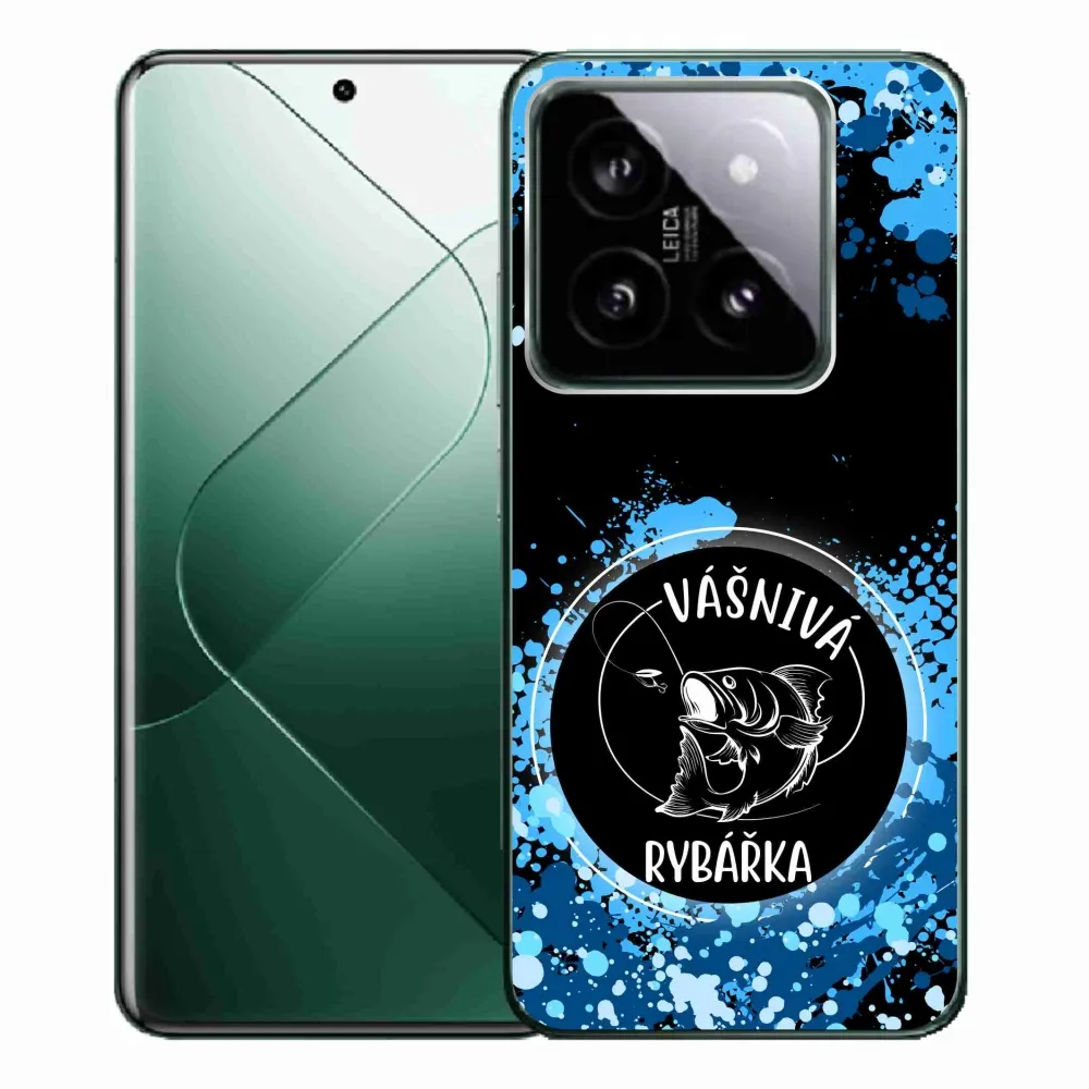 Rugalmas zselés tok mmCase kép Xiaomi 14 Pro - szenvedélyes halász fekete háttérrel