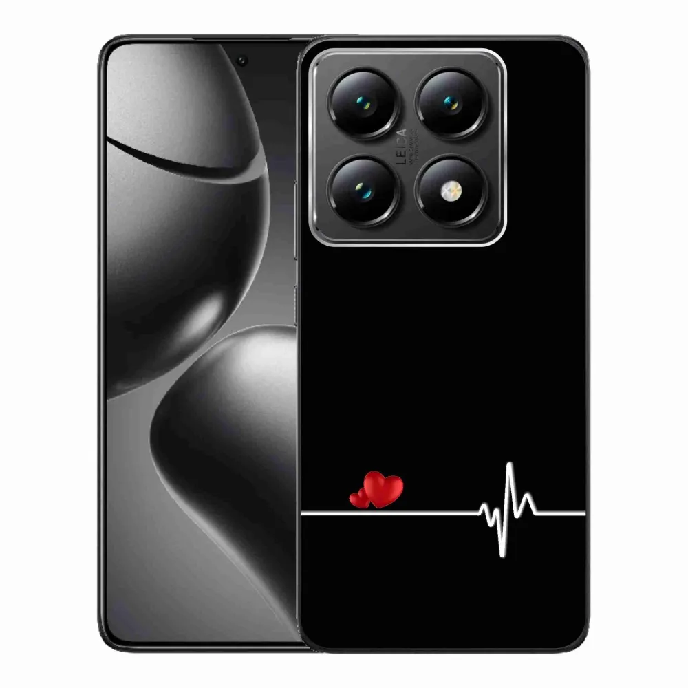 Rugalmas zselés tok mmCase kép Xiaomi 14T Pro - szív és szívverés fekete háttérrel