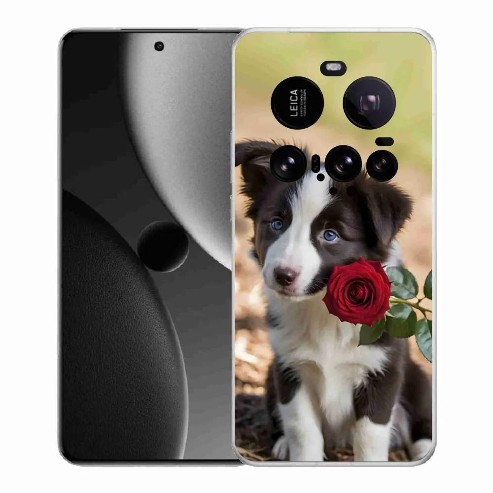 Rugalmas zselés tok mmCase kép Xiaomi 15 Ultra - aranyos border collie rózsával