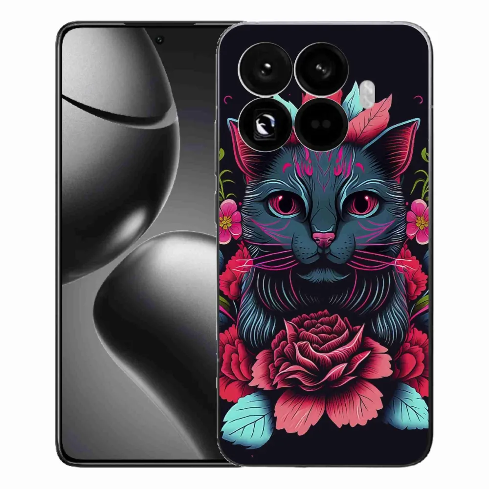 Gél borító mmCase a Xiaomi 15T Pro számára - virágok és macska
