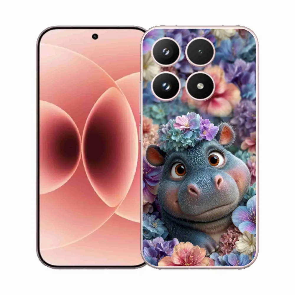 Rugalmas zselés tok mmCase kép Xiaomi 17 - víziló a virágokban