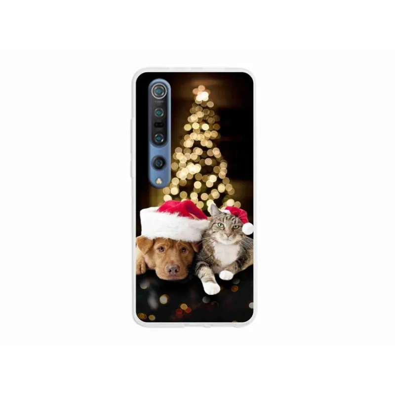 Gél borító mmCase a Xiaomi Mi 10 - Karácsonyi kutya és macska számára