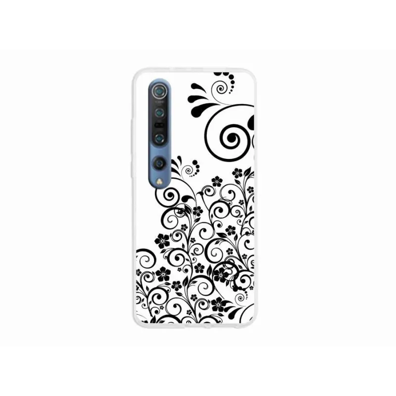 Gél borító mmCase a Xiaomi Mi 10 készülékhez - fekete és fehér virágmintás