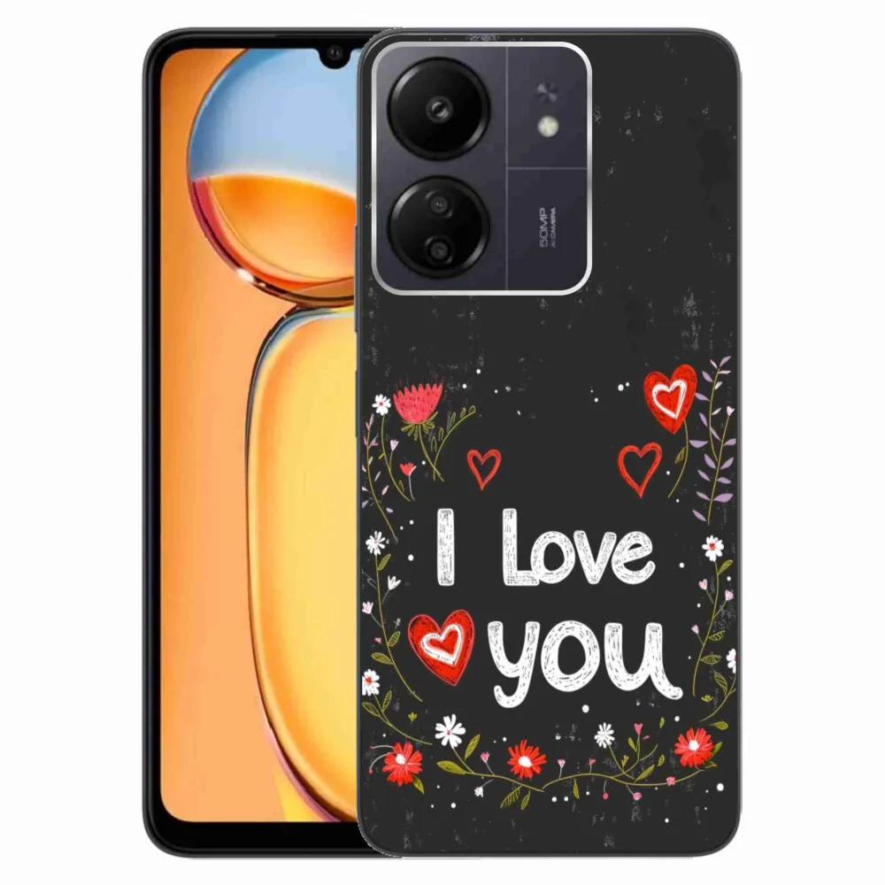 Rugalmas zselés tok mmCase a Xiaomi Poco C65/Redmi 13C képével - szeretlek fekete háttérrel