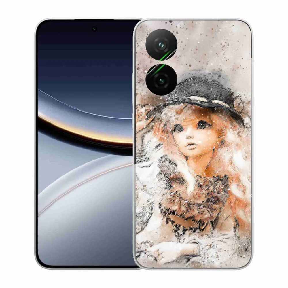 Rugalmas zselés tok mmCase a Xiaomi Poco F7 5G képével - lány kalapban