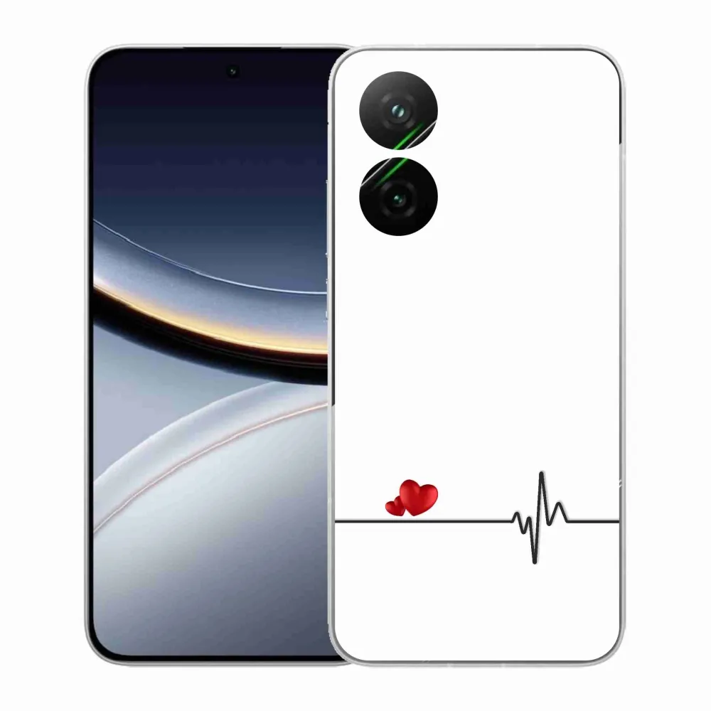 Rugalmas zselés tok mmCase a Xiaomi Poco F7 5G képével - szív és szívverés fehér háttérrel