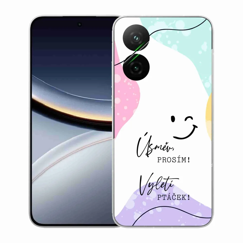 Rugalmas zselés tok mmCase kép Xiaomi Poco F7 5G - vicces szöveg 4 fehér háttérrel