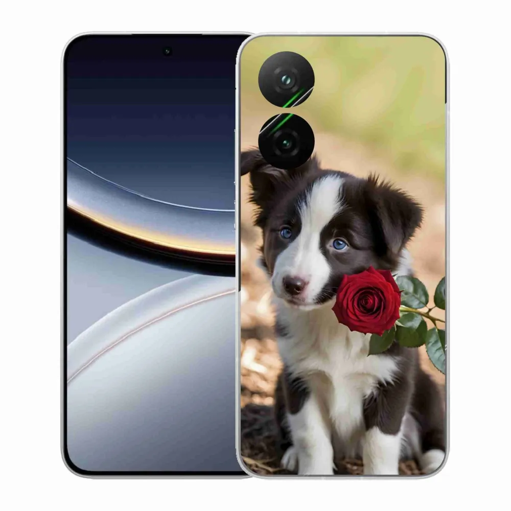 Rugalmas gél tok mmCase a Xiaomi Poco F7 5G képével - aranyos border collie rózsával