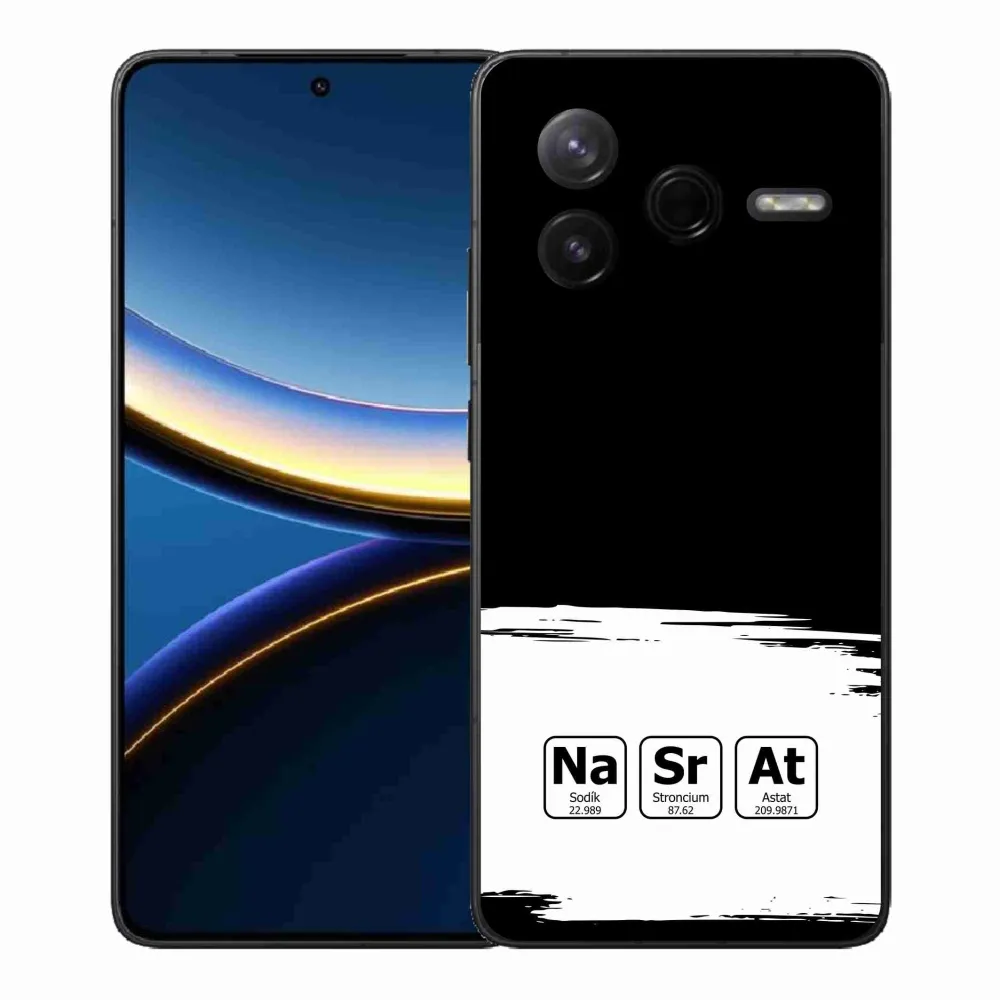 Rugalmas zselés tok mmCase kép Xiaomi Poco F7 Pro - kémiai elemek fehér és fekete háttérrel