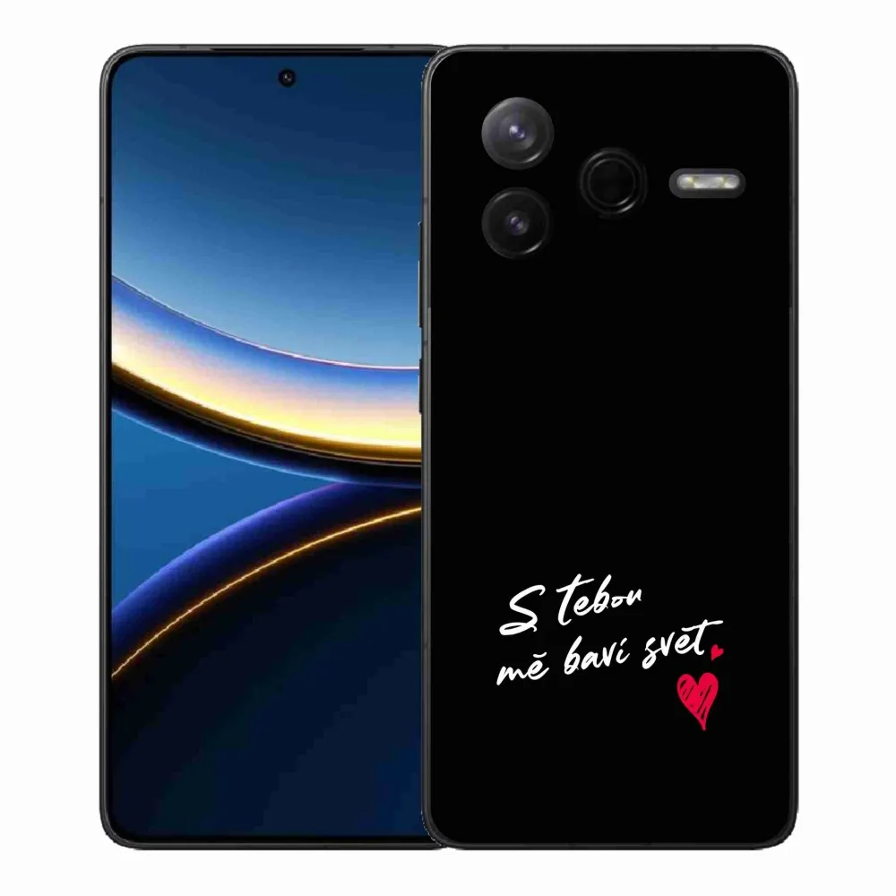 Rugalmas zselés tok mmCase a Xiaomi Poco F7 Pro képével - szerelmes szöveg 1 fekete háttérrel