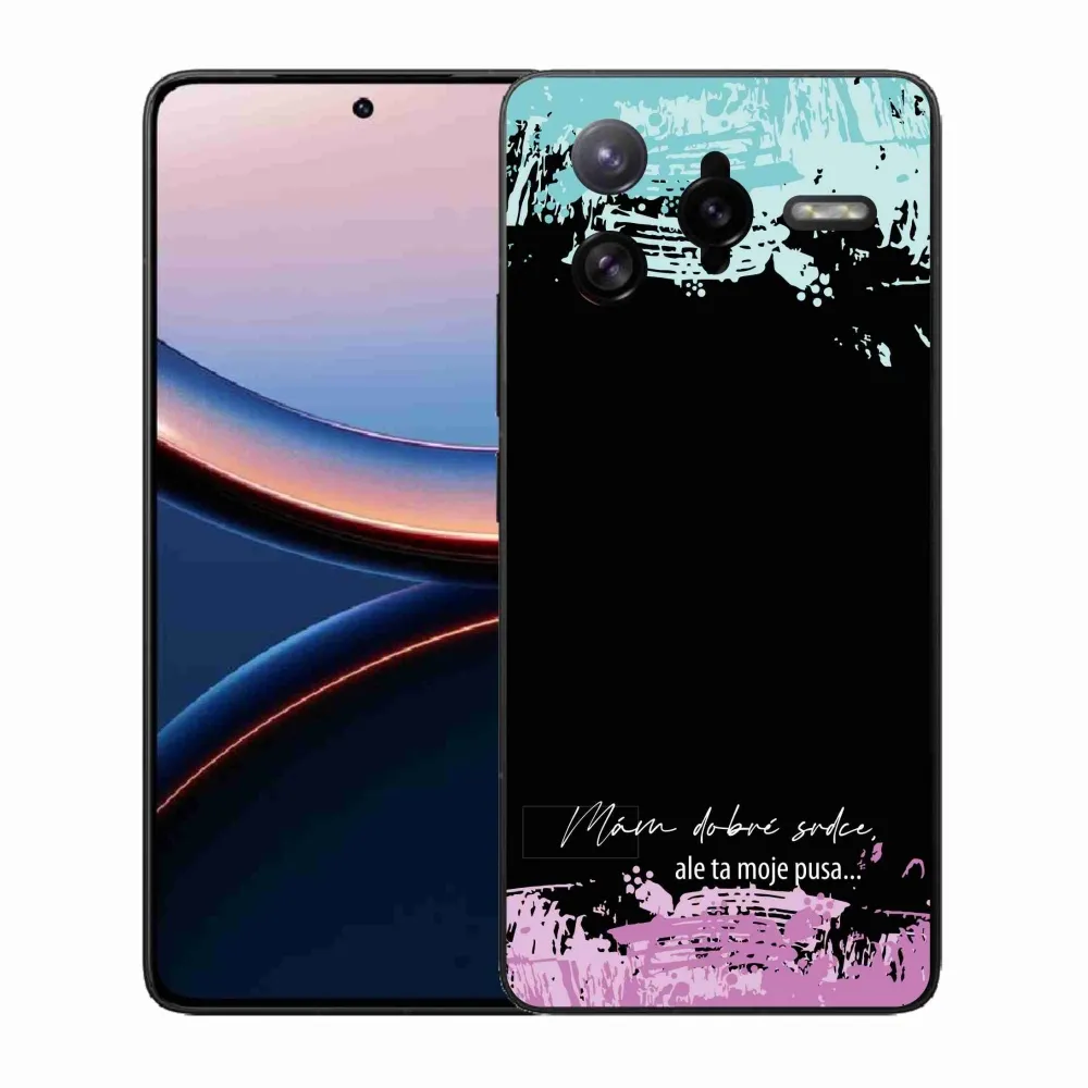 Rugalmas gél tok mmCase kép Xiaomi Poco F7 Ultra - vicces szöveg 3 fekete háttérrel